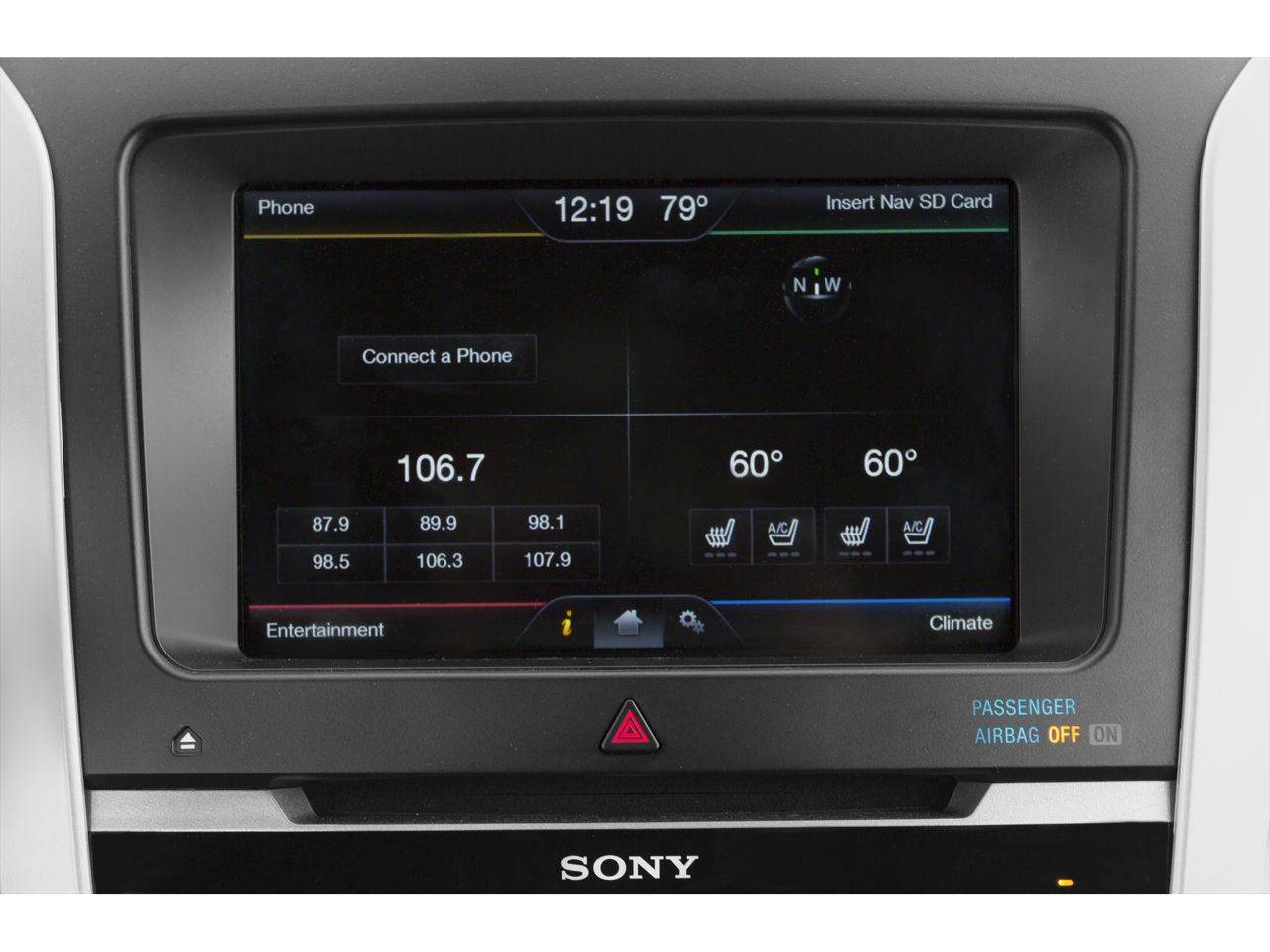 - Radio: Sony Audio System w/12-Speakers -inc: HD Radio, and SiriusXM satellite radio, Note: SiriusXM satellite radio includes 6 month prepaid subscription (48 contiguous states), Service not available in Alaska or Hawaii