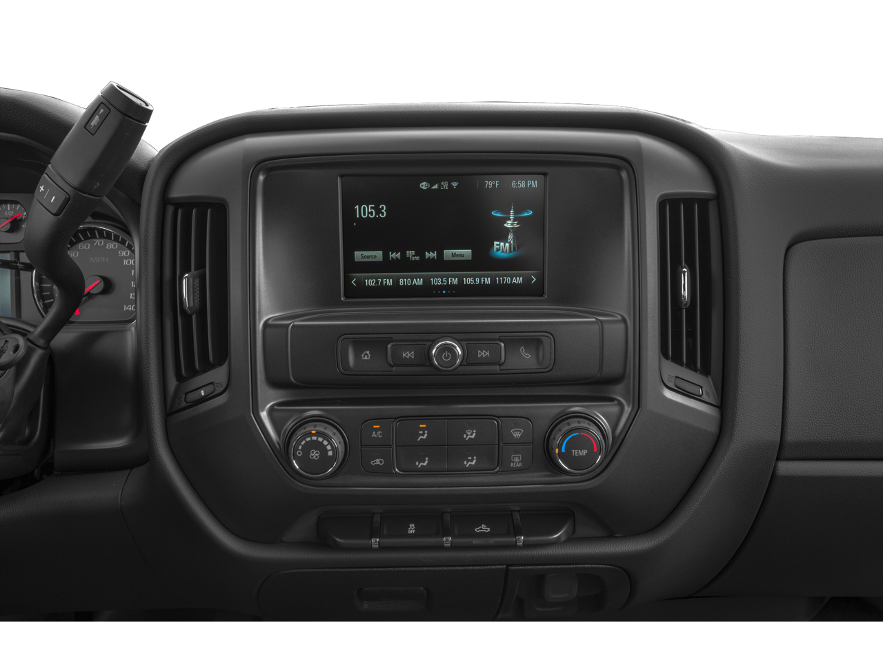 - Audio system, Chevrolet Infotainment System with 8" diagonal color touch-screen, AM/FM stereo with seek-and-scan and digital clock, includes Bluetooth streaming audio for music and select phones; USB ports; auxiliary jack; voice-activated technology for radio and phone; and Shop with the ability to browse, select and install apps to your vehicle. Apps include Pandora, iHeartRadio, The Weather Channel and more. (Upgradeable to (IO6) 8" Diagonal Color Touch Navigation with Chevrolet Infotainment.)