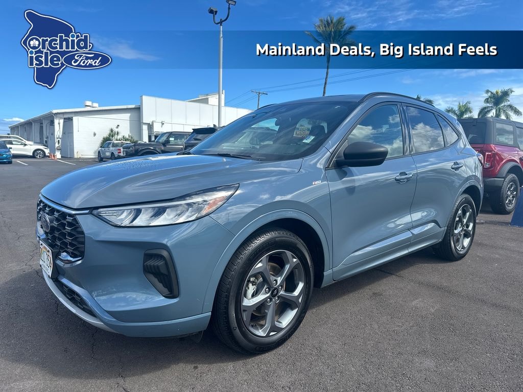Recent Arrival! Odometer is 30956 miles below market average! 26/32 City/Highway MPG AWD. Discover the difference at Orchid Isle Ford, where we proudly serve the Big Island and all neighboring islands with high-quality pre-owned vehicles and unmatched customer care. Every vehicle in our inventory is thoroughly inspected for reliability and value, so you can shop with confidence. Take a closer look at this great option and see why customers across Hawaii trust Orchid Isle Ford for their automotive needs! Vapor Blue Metallic 2023 Ford Escape ST-Line AWD 8-Speed Automatic 1.5L EcoBoost 4D Sport Utility Price excludes tax, license, and registration fees. Financing is available on approved credit. A dealer documentation fee of $349 will apply. All vehicles are subject to prior sale. Please note that the odometer reading disclosed above is based on the current reading at the time this posting was generated and may increase. For the most accurate and up-to-date details, please contact the dealer.